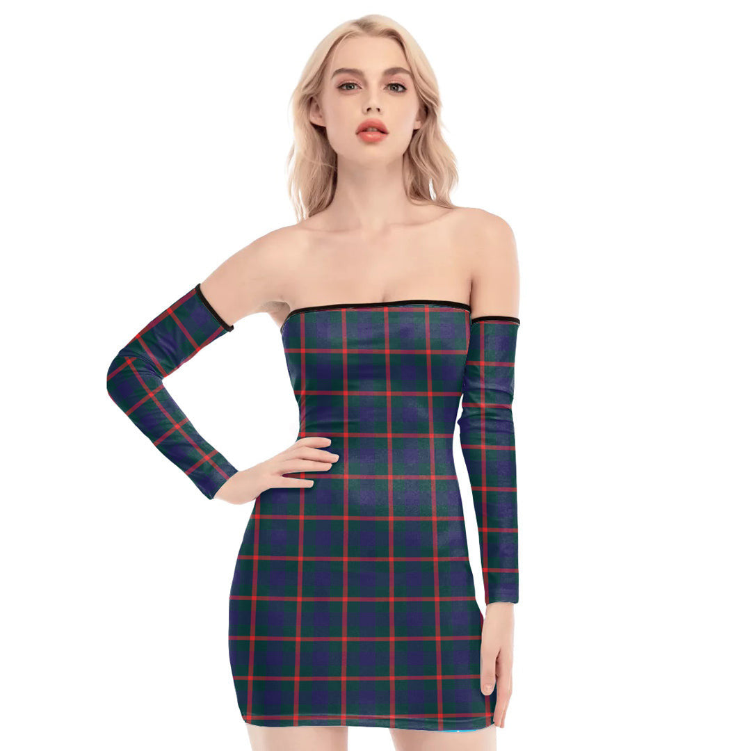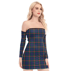 Agnew Modern Tartan Plaid Off-Shoulder Back Lace-Up Dress