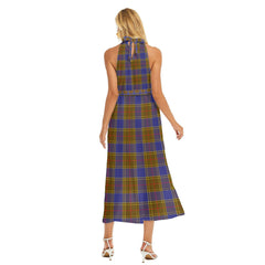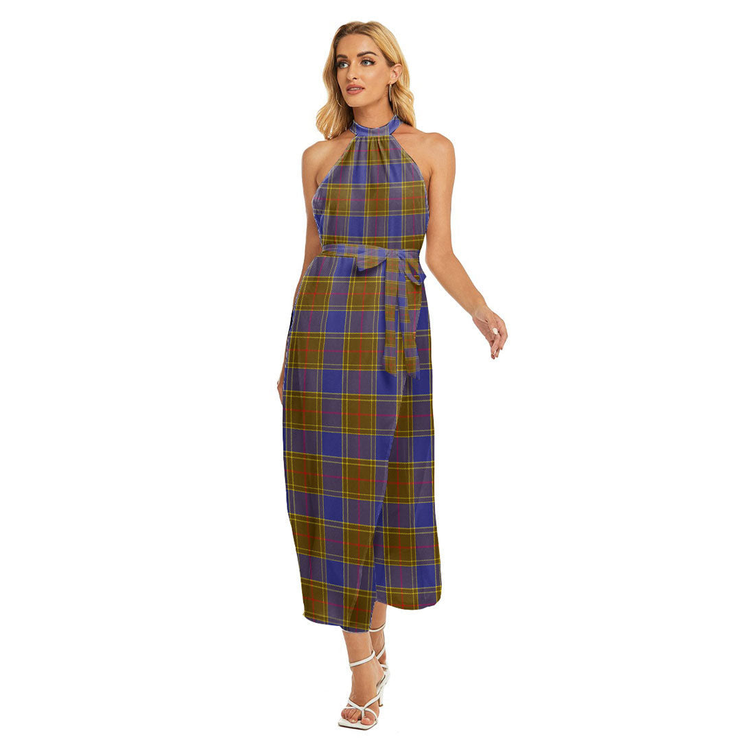 Balfour Modern Tartan Plaid Wrap Hem Belted Halter Dress