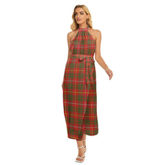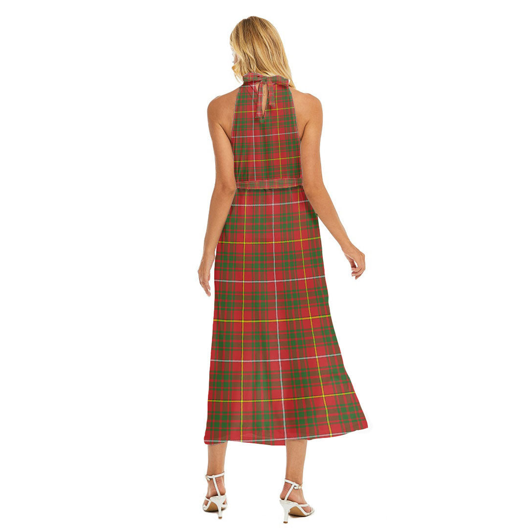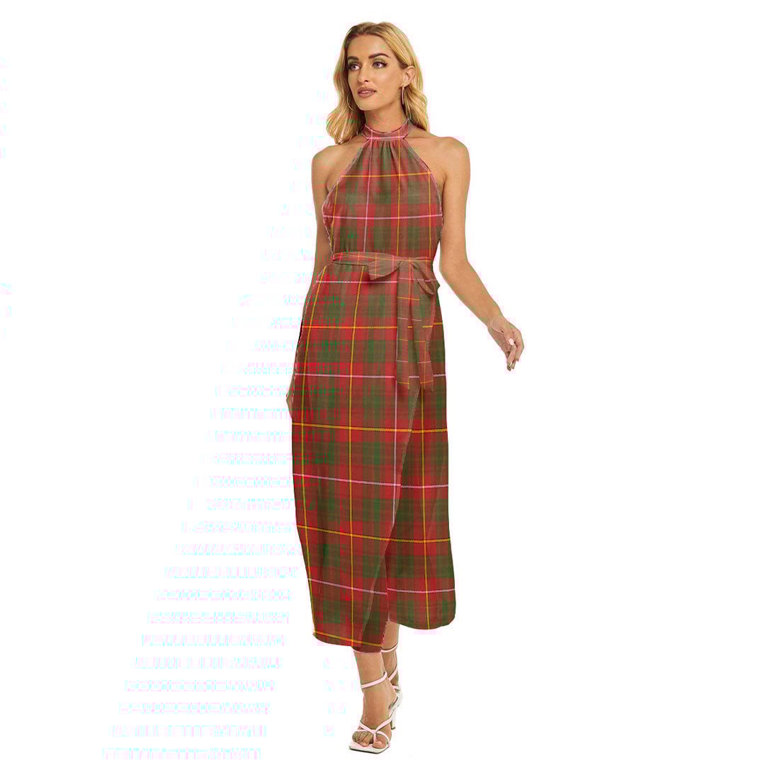 Bruce Modern Tartan Plaid Wrap Hem Belted Halter Dress