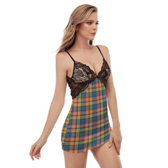 Buchanan Ancient Tartan Plaid Back Straps Cami Dress With Lace