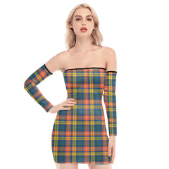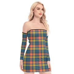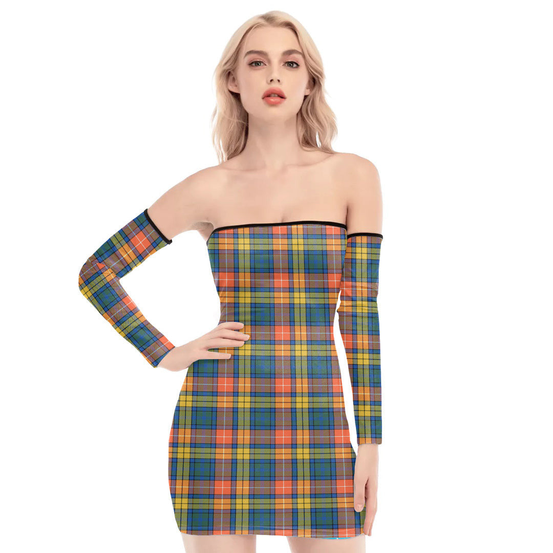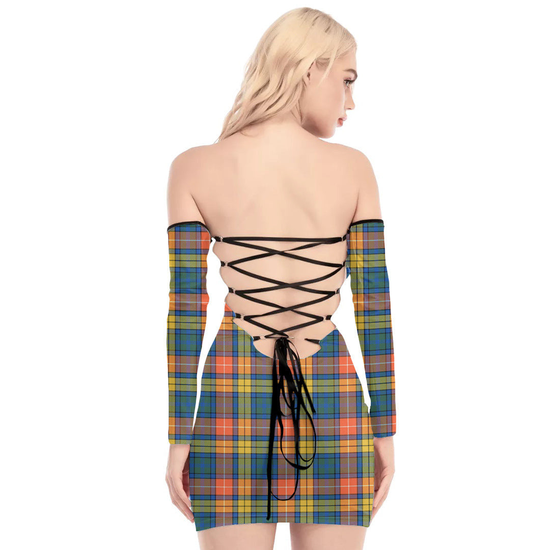 Buchanan Ancient Tartan Plaid Off-Shoulder Back Lace-Up Dress