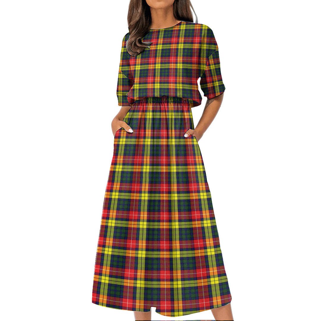Buchanan Modern Tartan Plaid Women's Elastic Waist Dress
