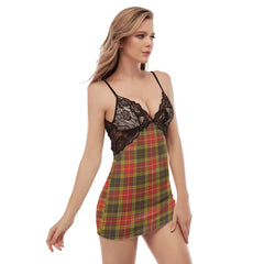 Buchanan Old Set Weathered Tartan Plaid Back Straps Cami Dress With Lace