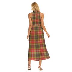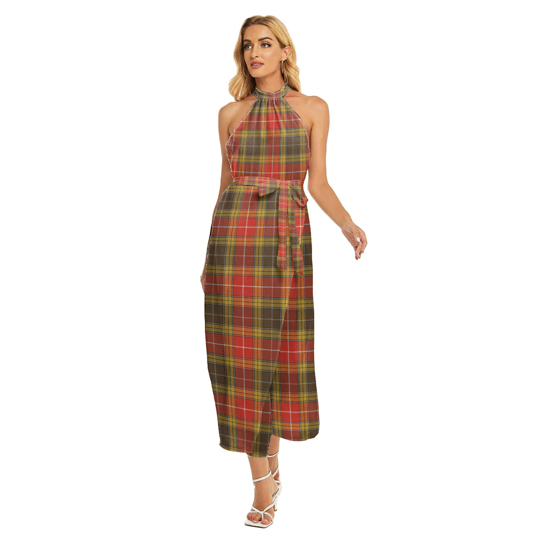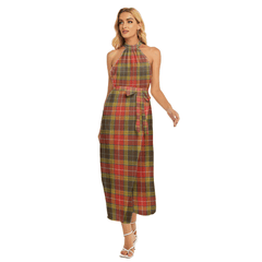 Buchanan Old Set Weathered Tartan Plaid Wrap Hem Belted Halter Dress