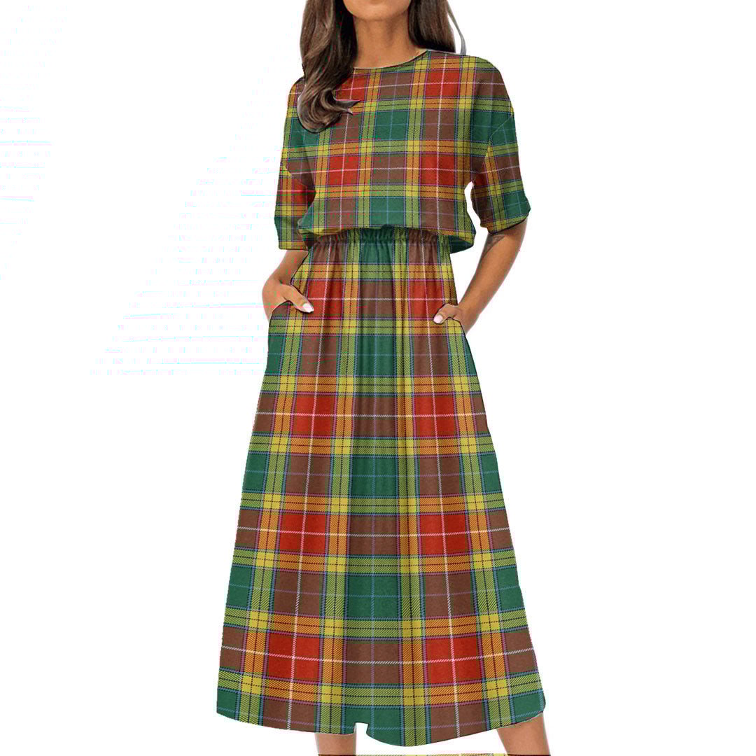 Buchanan Old Sett Tartan Plaid Women's Elastic Waist Dress
