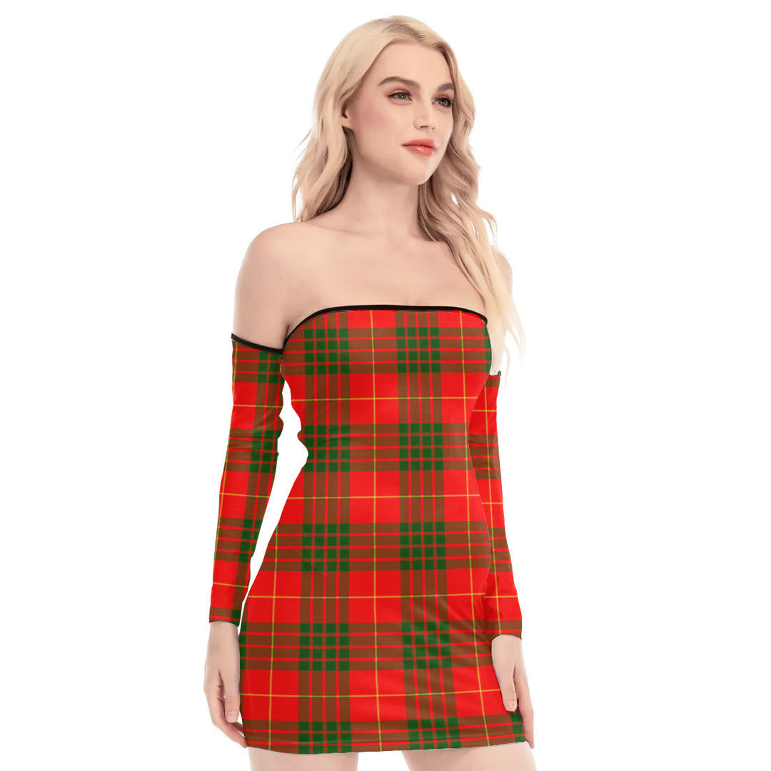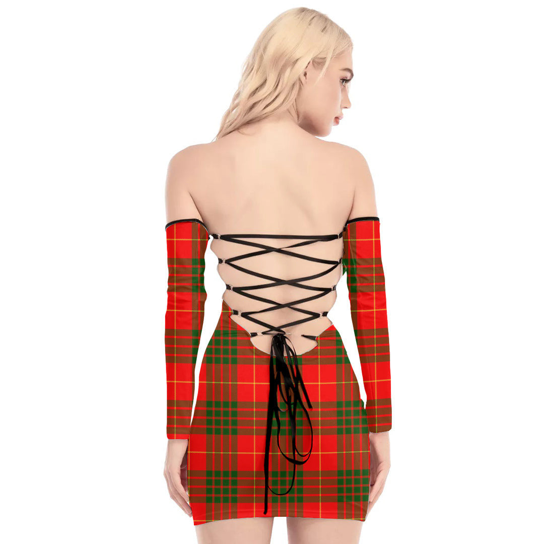 Cameron Modern Tartan Plaid Off-Shoulder Back Lace-Up Dress