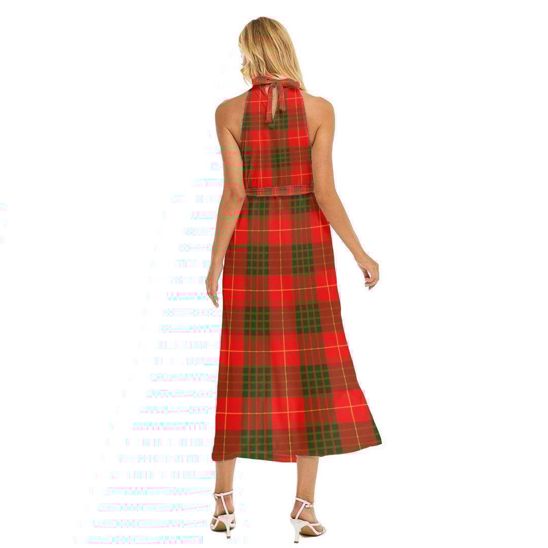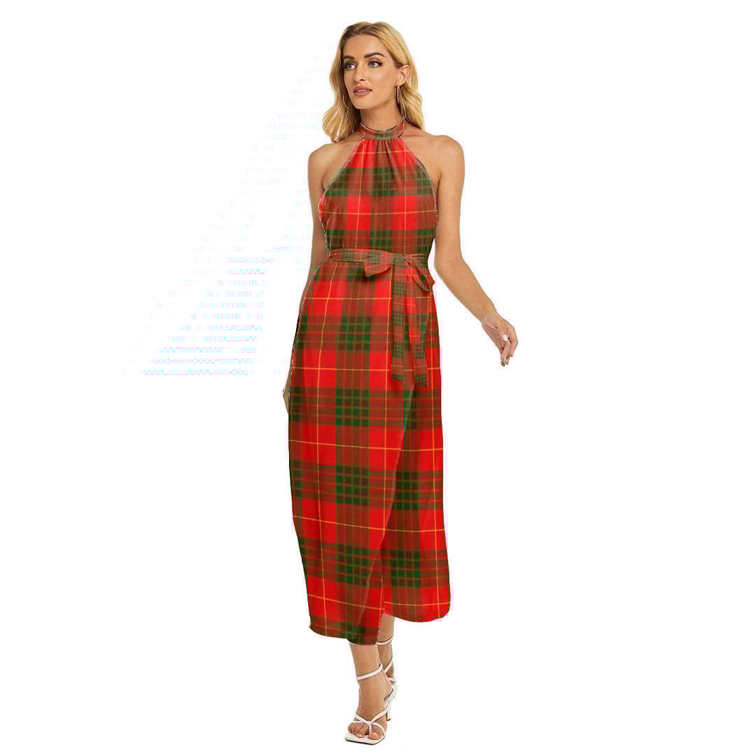 Cameron Modern Tartan Plaid Wrap Hem Belted Halter Dress