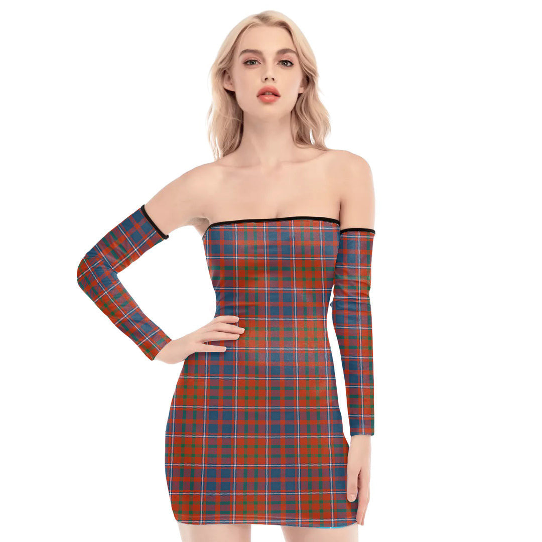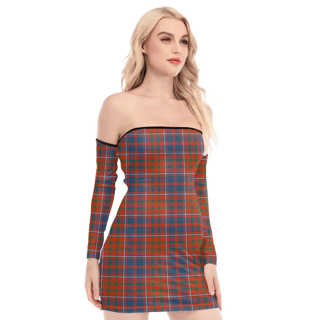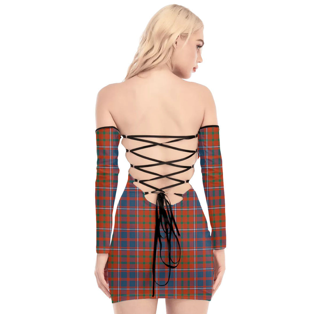 Cameron of Lochiel Ancient Tartan Plaid Off-Shoulder Back Lace-Up Dress