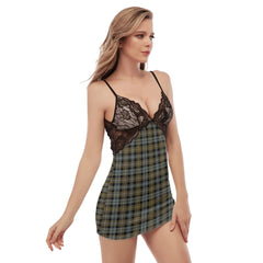 Campbell Argyll Weathered Tartan Plaid Back Straps Cami Dress With Lace