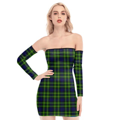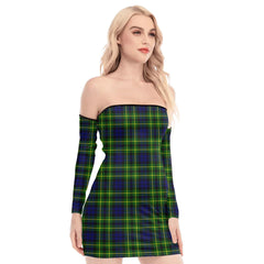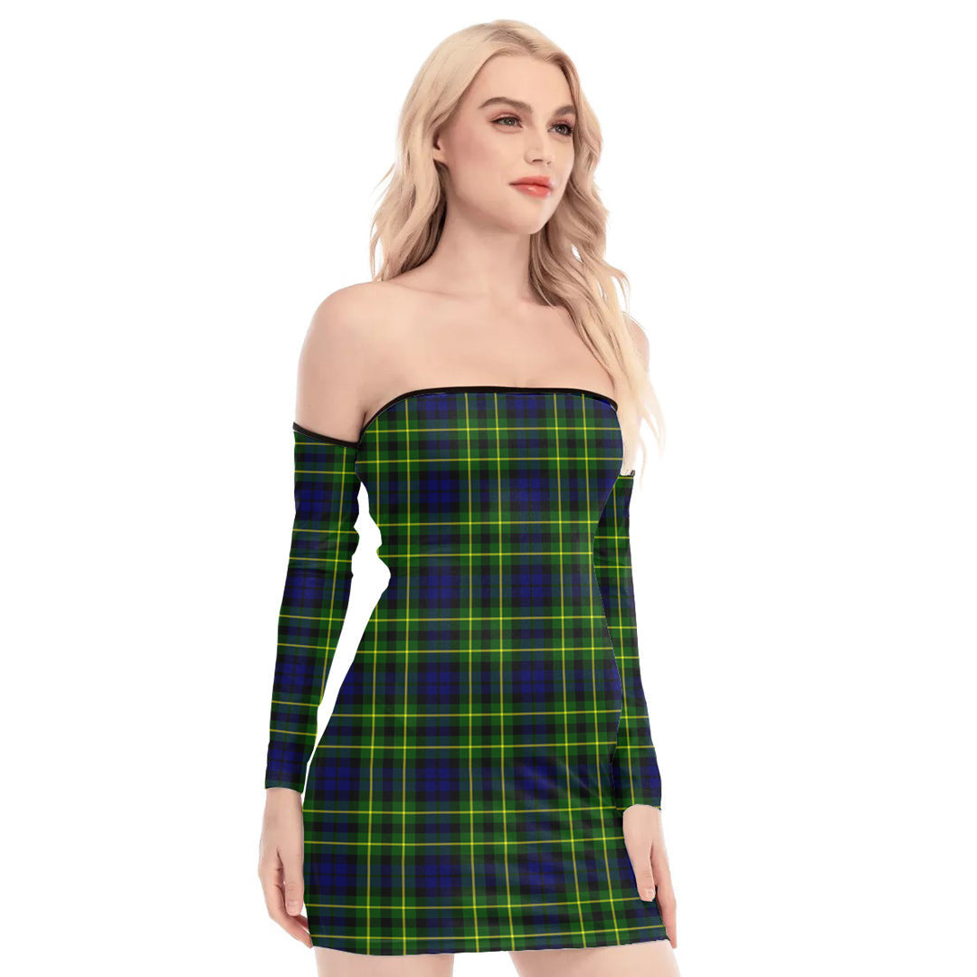 Campbell of Breadalbane Modern Tartan Plaid Off-Shoulder Back Lace-Up Dress