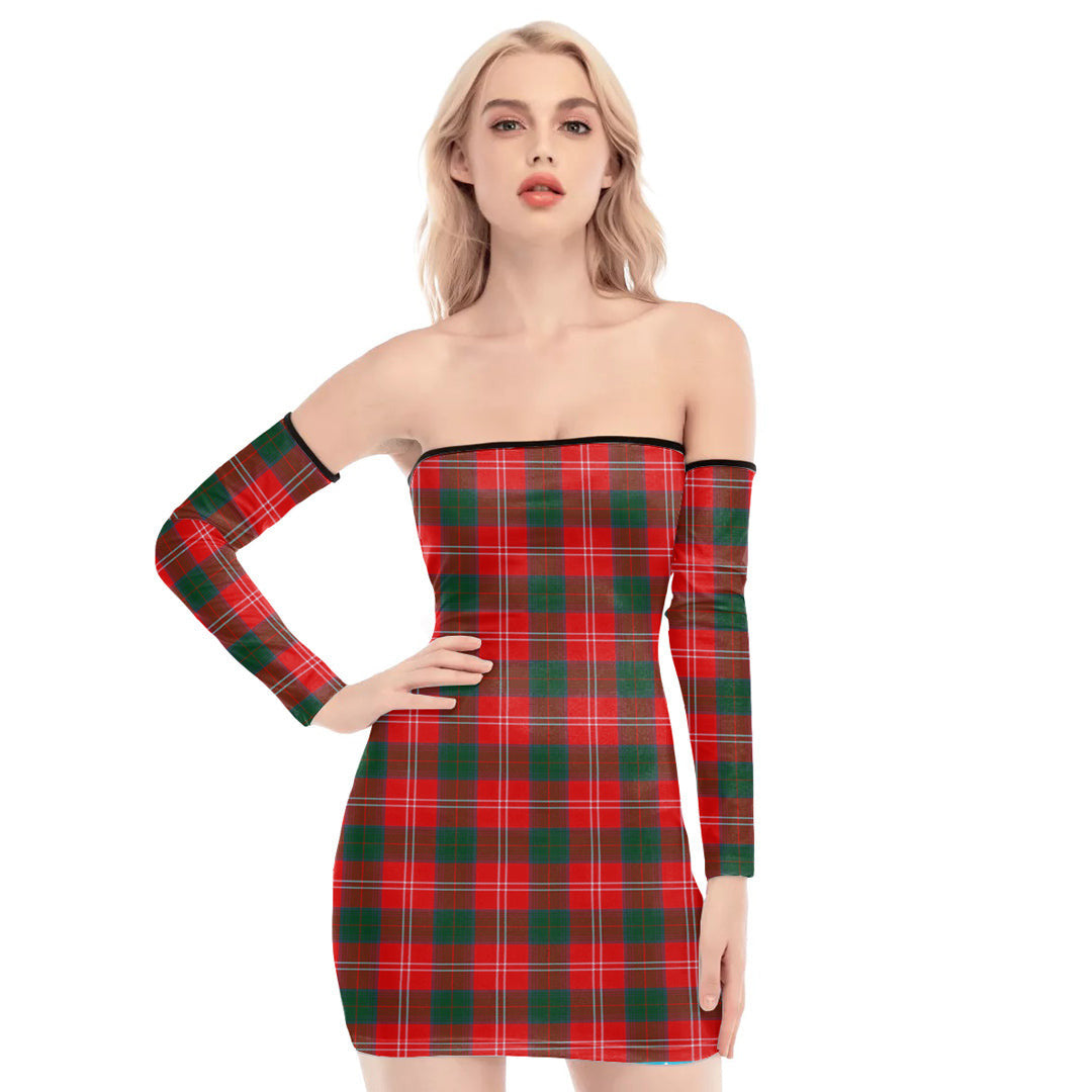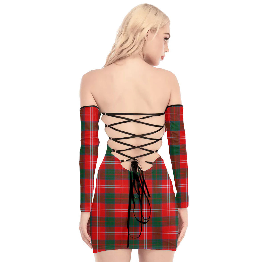 Chisholm Modern Tartan Plaid Off-Shoulder Back Lace-Up Dress