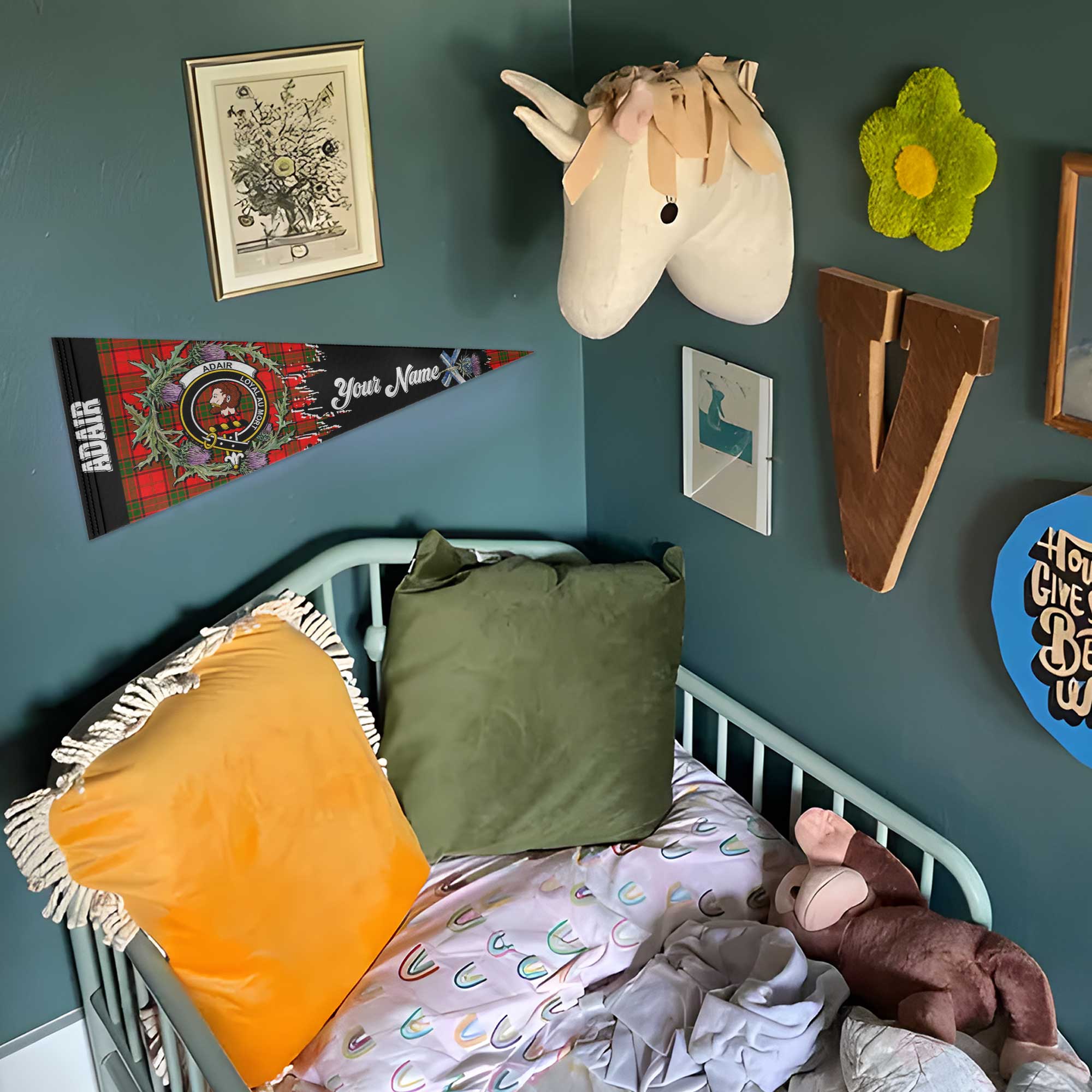 - Crest: Clan Adair badge on the center Felt Pennant.