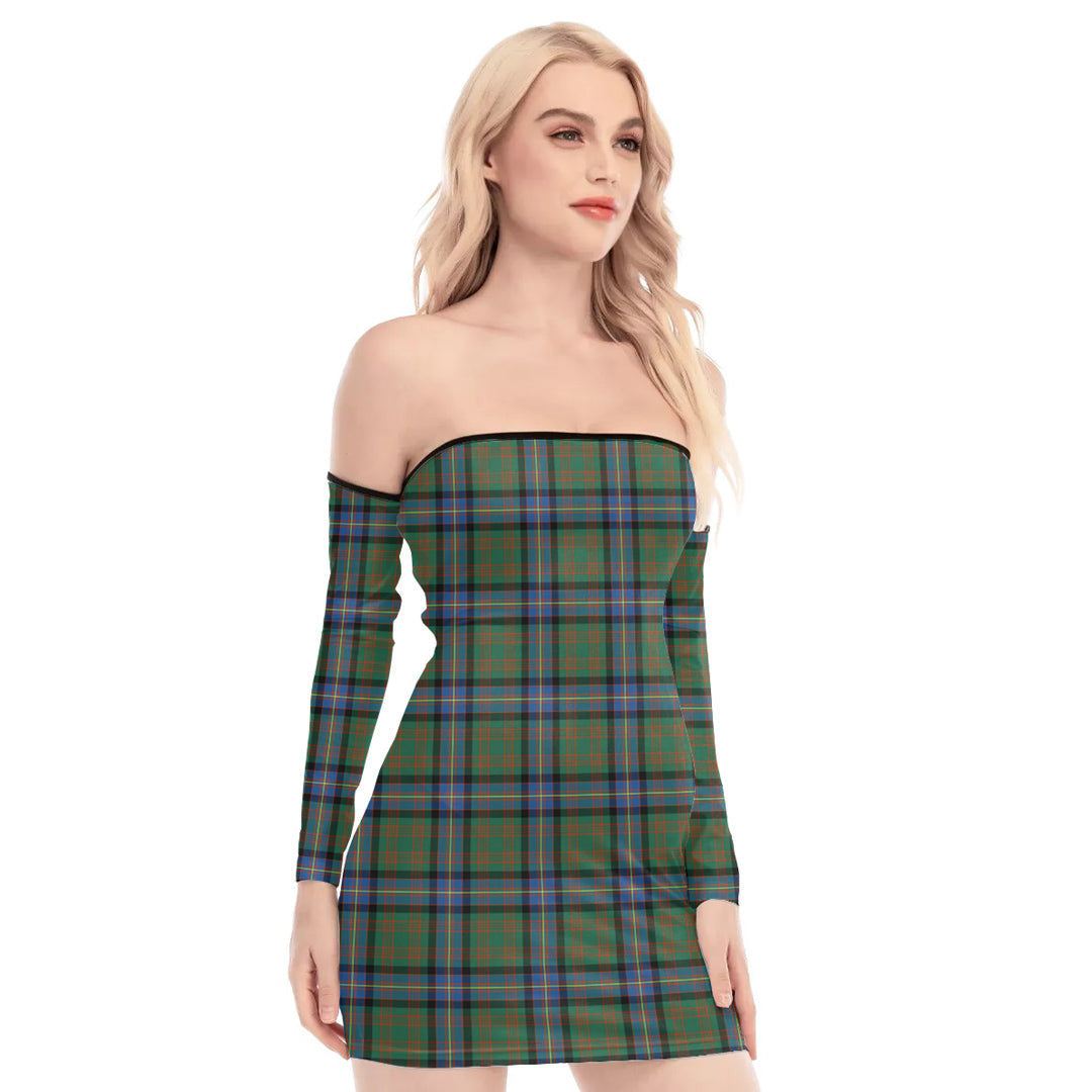 Cochrane Ancient Tartan Plaid Off-Shoulder Back Lace-Up Dress