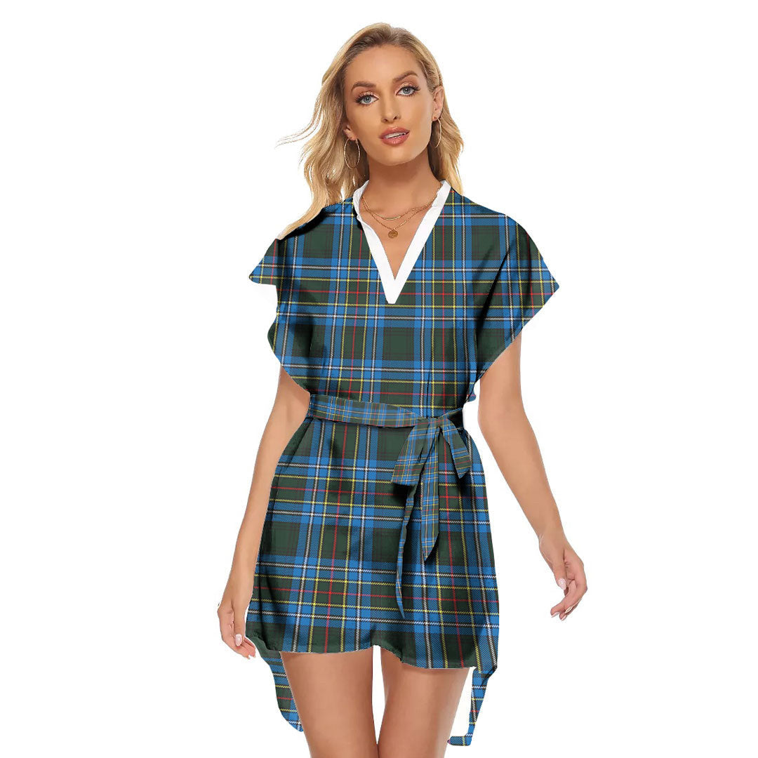 Cockburn Modern Tartan Plaid Stand-up Collar Casual Dress With Belt