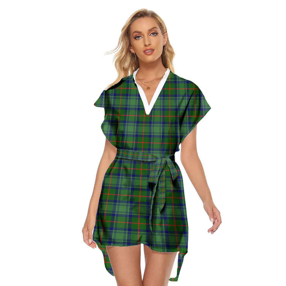 Cranstoun Tartan Plaid Stand-up Collar Casual Dress With Belt