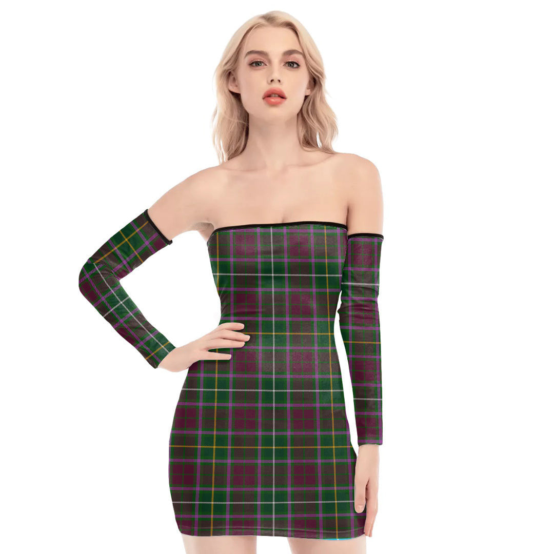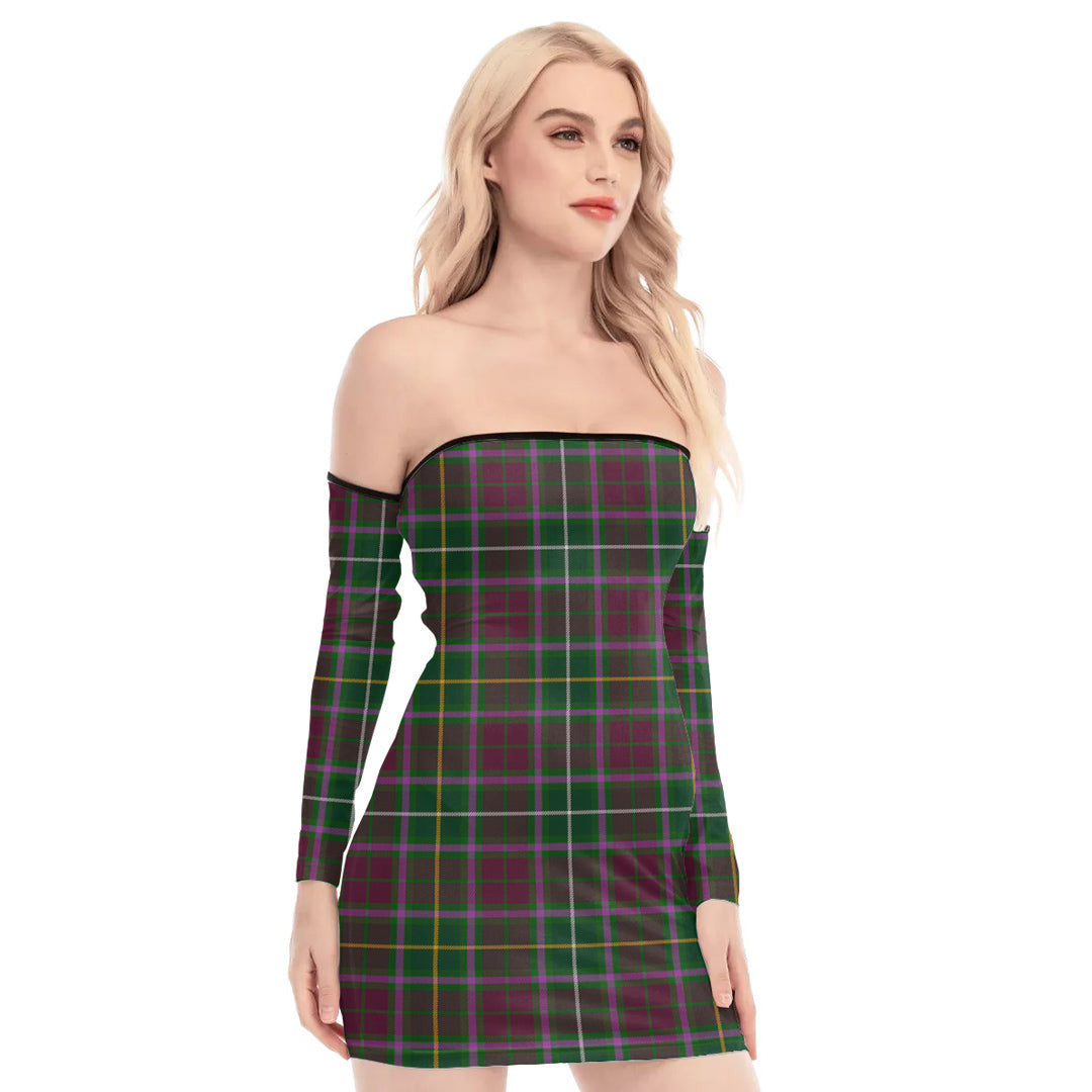 Crosbie Tartan Plaid Off-Shoulder Back Lace-Up Dress