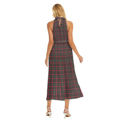 Cumming Hunting Modern Tartan Crest Wrap Hem Belted Halter Dress