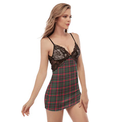 Cumming Hunting Modern Tartan Plaid Back Straps Cami Dress With Lace