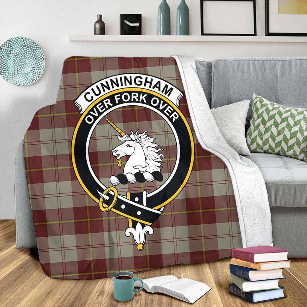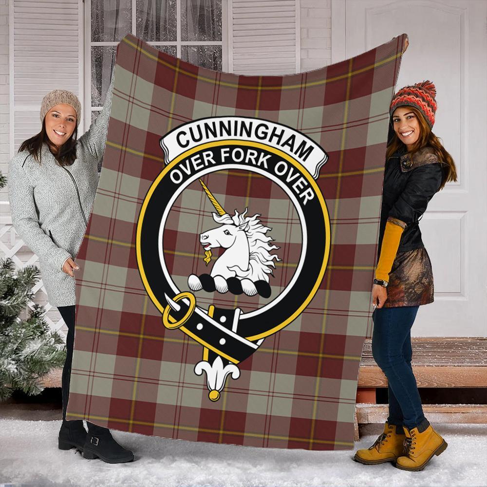 Cunningham Burgundy Dancers Tartan Crest Premium Blanket