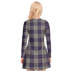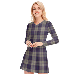 Cunningham Dress Blue Dancers Tartan Plaid V-neck Long Sleeve Dress