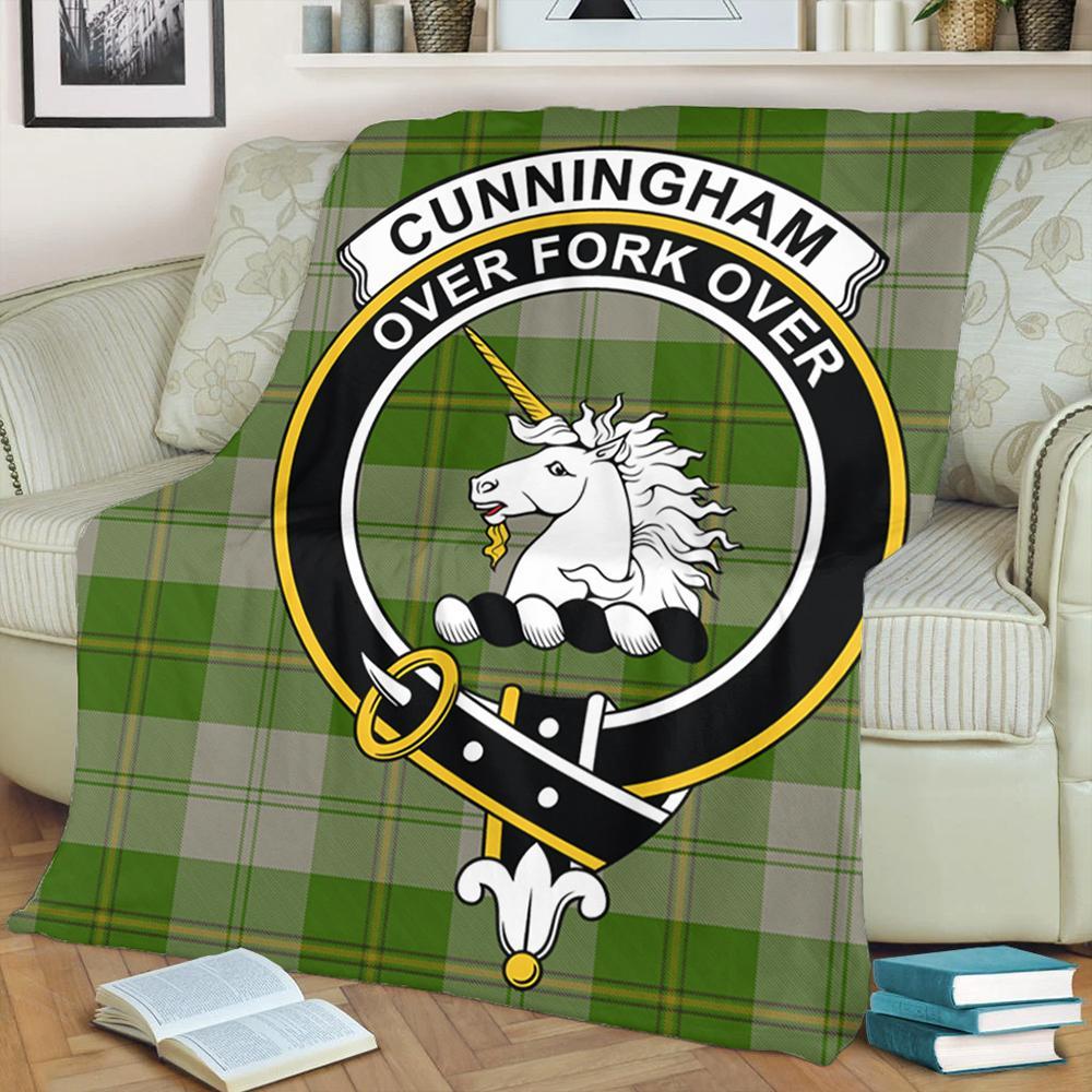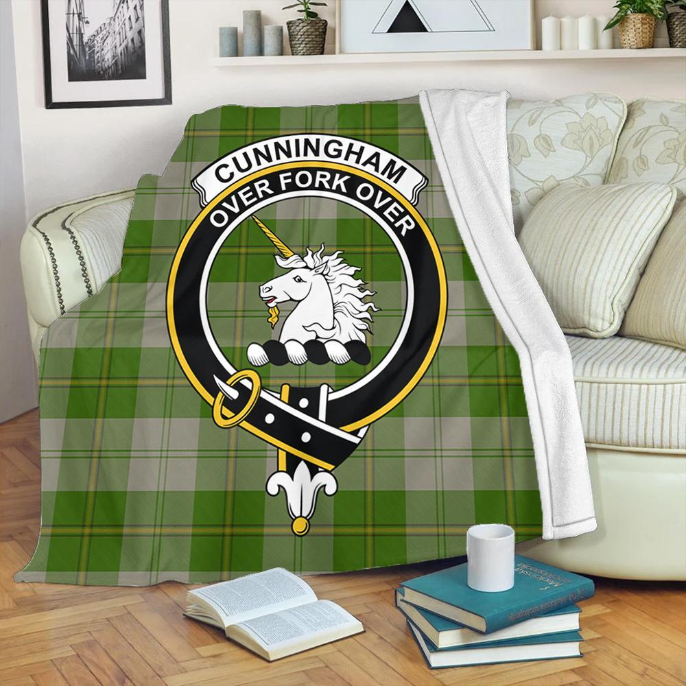 Cunningham Dress Green Dancers Tartan Crest Premium Blanket
