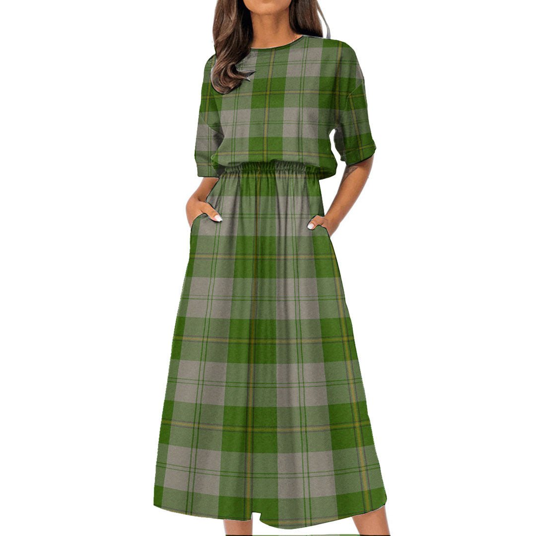 Cunningham Dress Green Dancers Tartan Plaid Women's Elastic Waist Dress