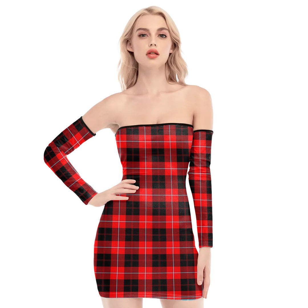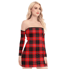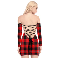Cunningham Modern Tartan Plaid Off-Shoulder Back Lace-Up Dress