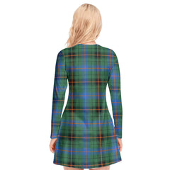 Davidson Ancient Tartan Plaid V-neck Long Sleeve Dress