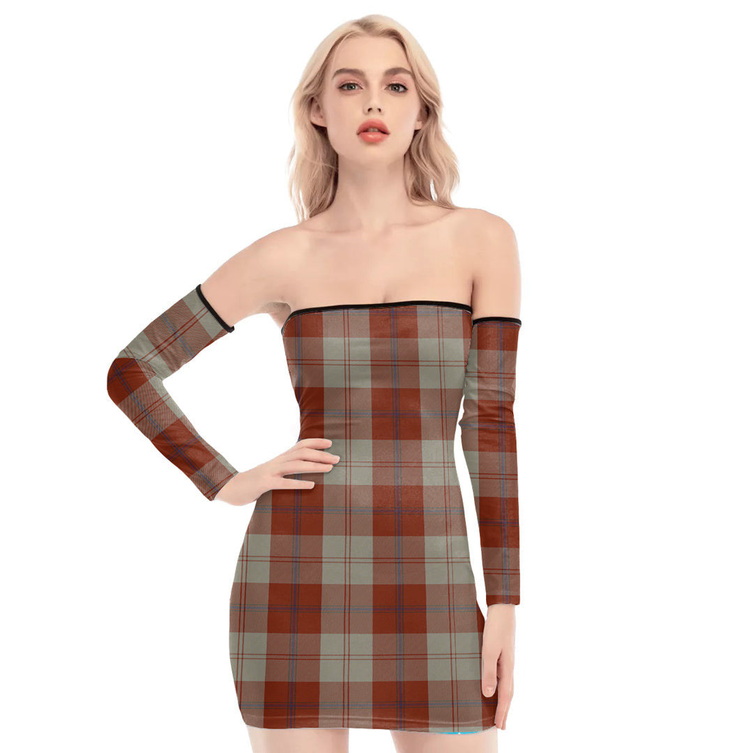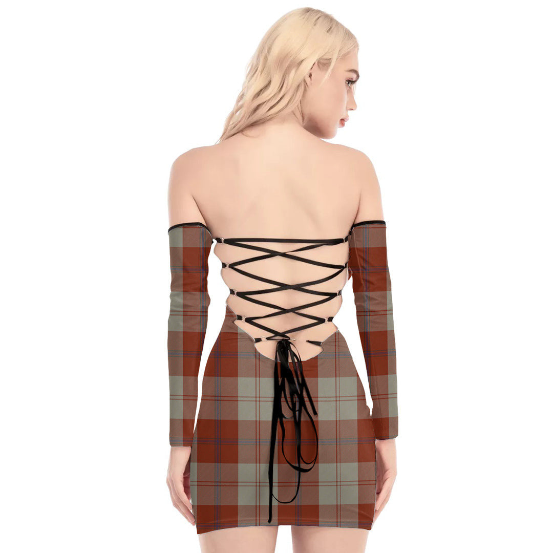Davidson Dress Dancers Tartan Plaid Off-Shoulder Back Lace-Up Dress