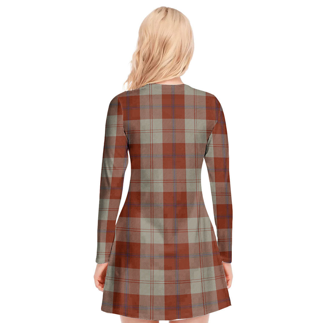 Davidson Dress Dancers Tartan Plaid V-neck Long Sleeve Dress