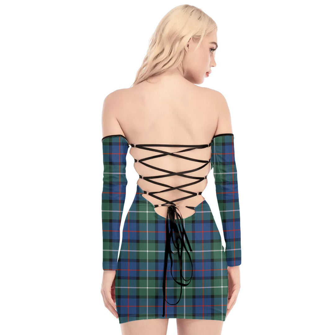 Davidson of Tulloch Tartan Plaid Off-Shoulder Back Lace-Up Dress