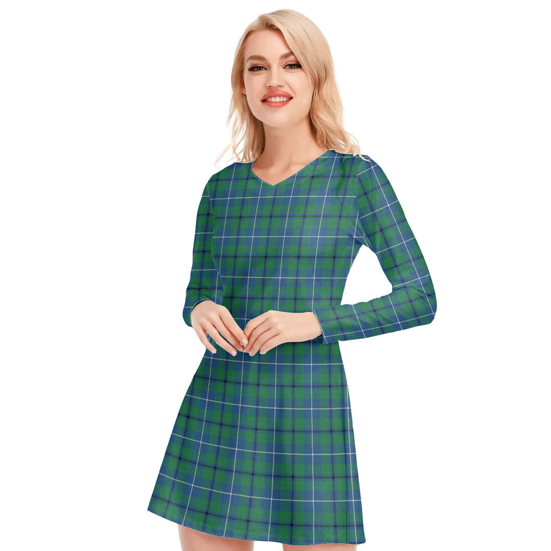 Douglas Ancient Tartan Plaid V-neck Long Sleeve Dress