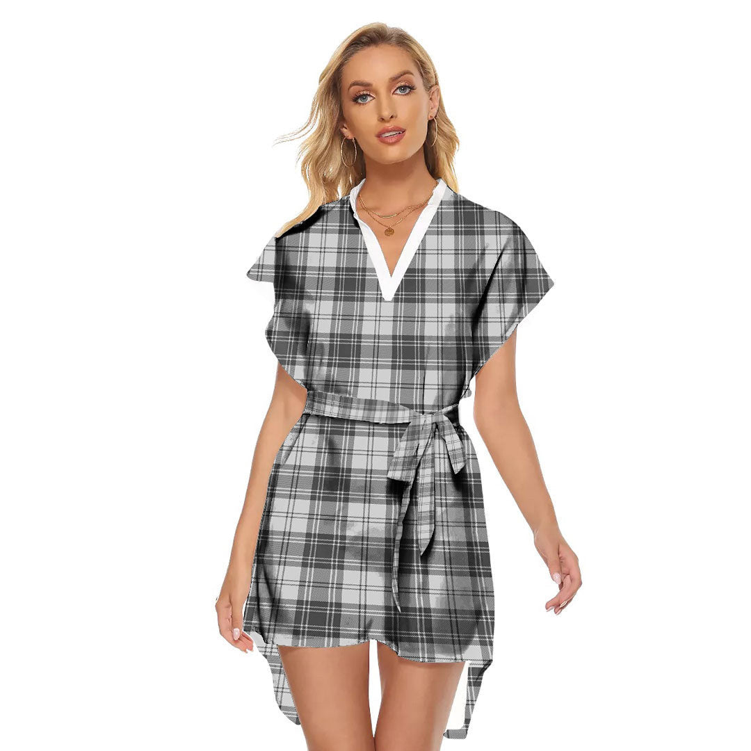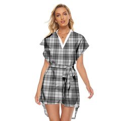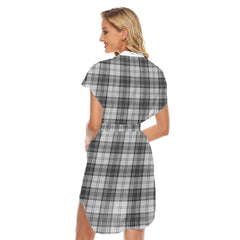 Douglas Grey Modern Tartan Plaid Stand-up Collar Casual Dress With Belt
