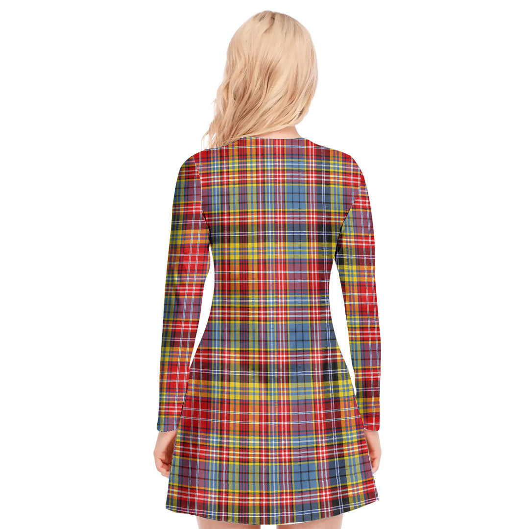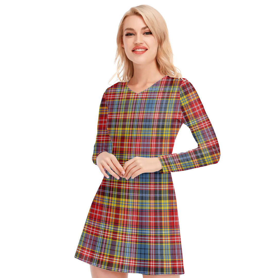 Drummond of Strathallan Tartan Plaid V-neck Long Sleeve Dress