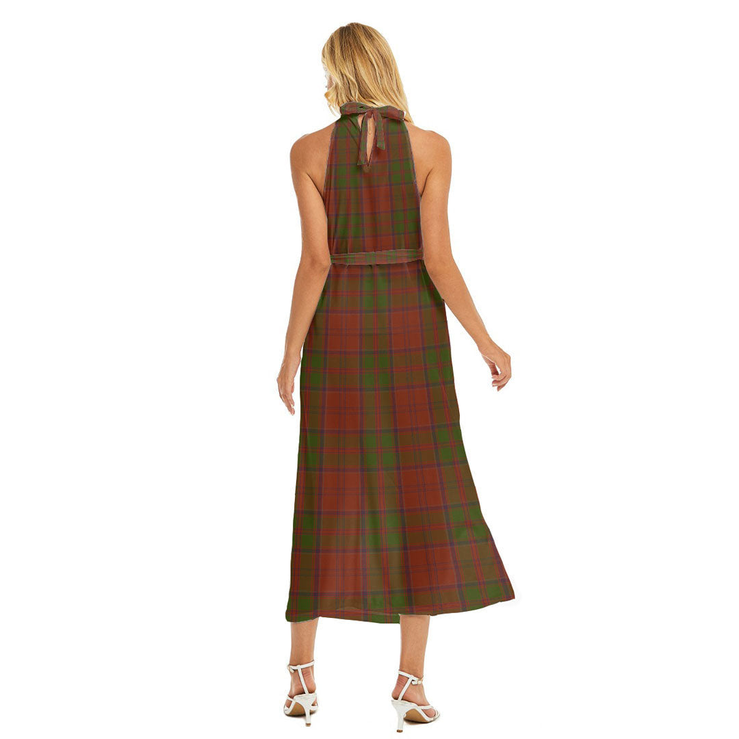 Drummond Tartan Plaid Tartan Plaid Wrap Hem Belted Halter Dress