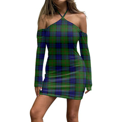 Dundas Modern Tartan Plaid Halter Lace-up Dress