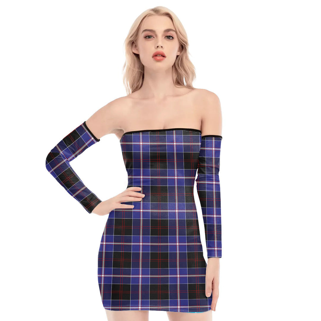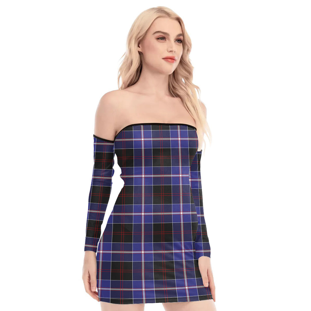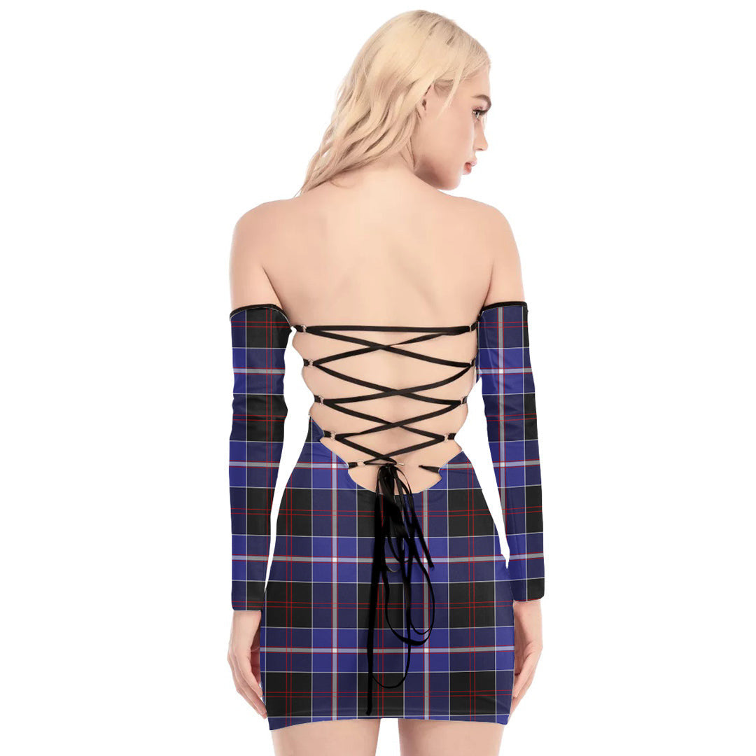 Dunlop Modern Tartan Plaid Off-Shoulder Back Lace-Up Dress