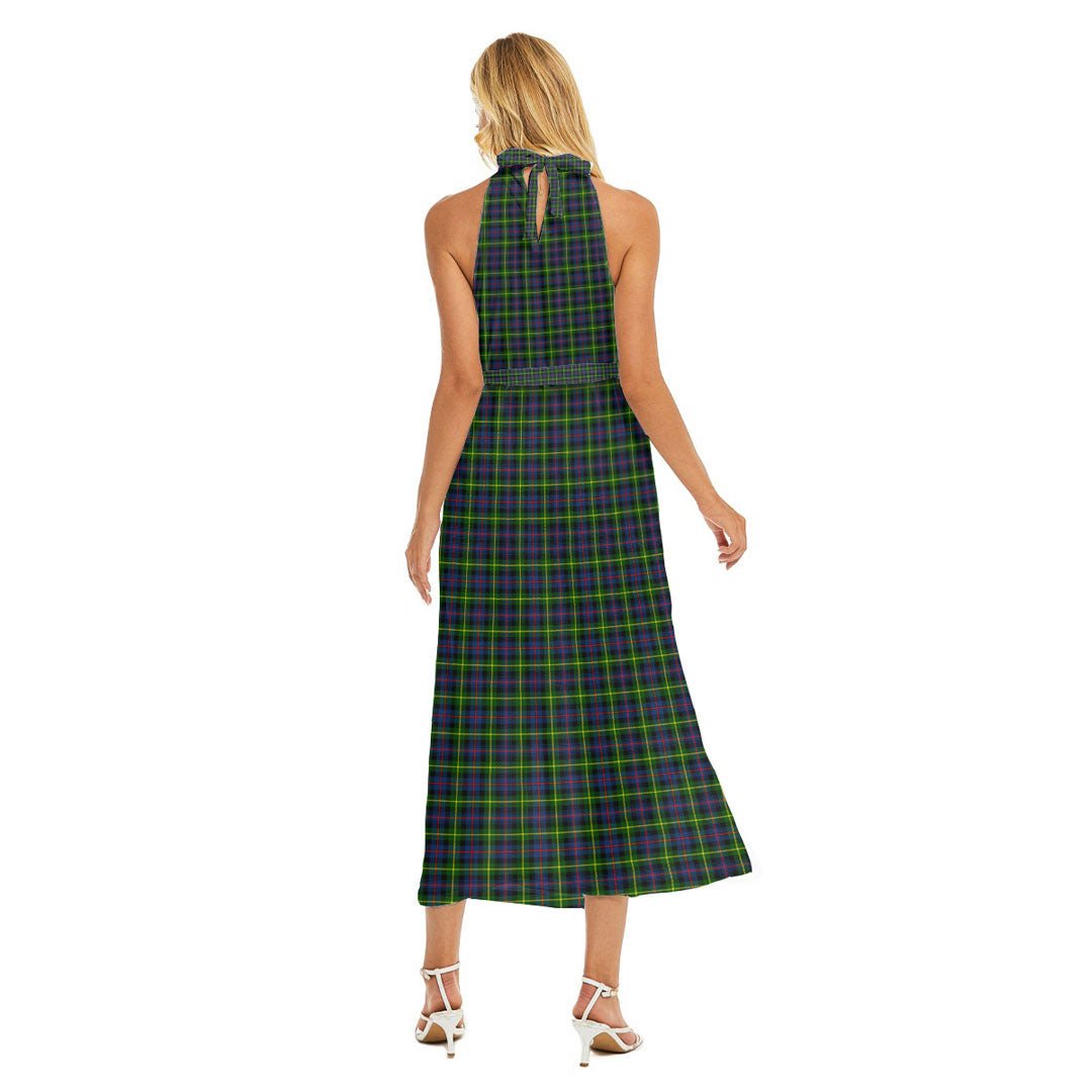 Farquharson Modern Tartan Crest Wrap Hem Belted Halter Dress