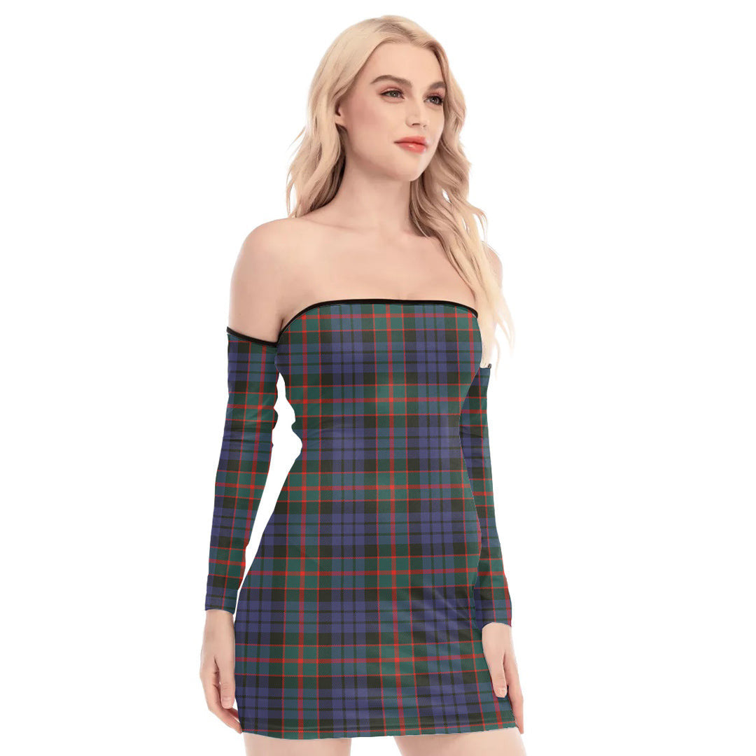 Fletcher of Dunans Tartan Plaid Off-Shoulder Back Lace-Up Dress