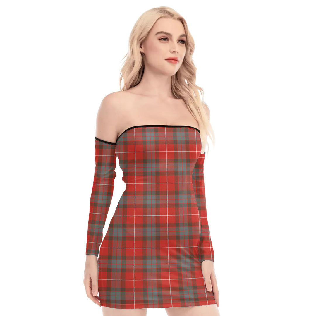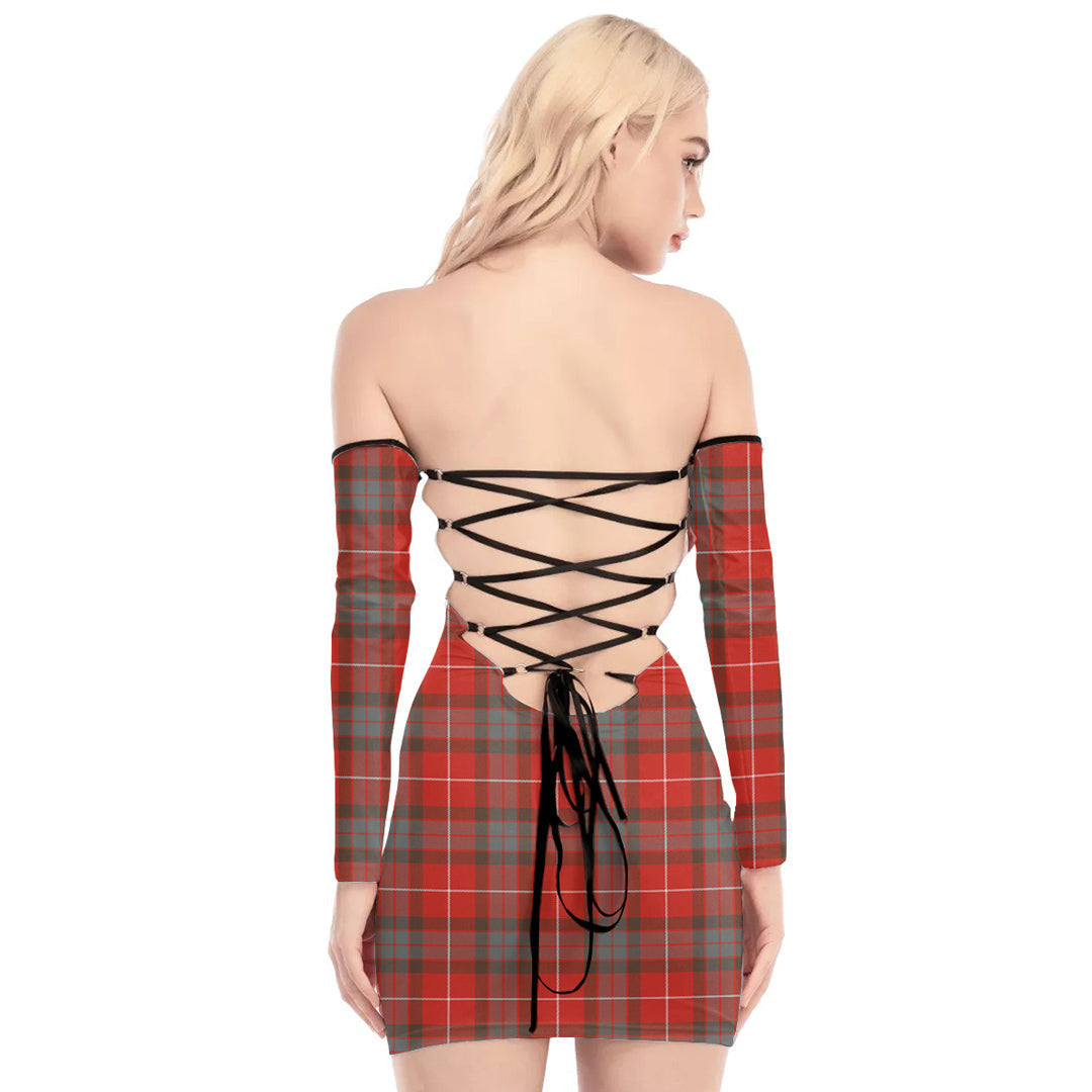 Fraser Weathered Tartan Plaid Off-Shoulder Back Lace-Up Dress