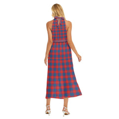 Galloway Red Tartan Crest Wrap Hem Belted Halter Dress