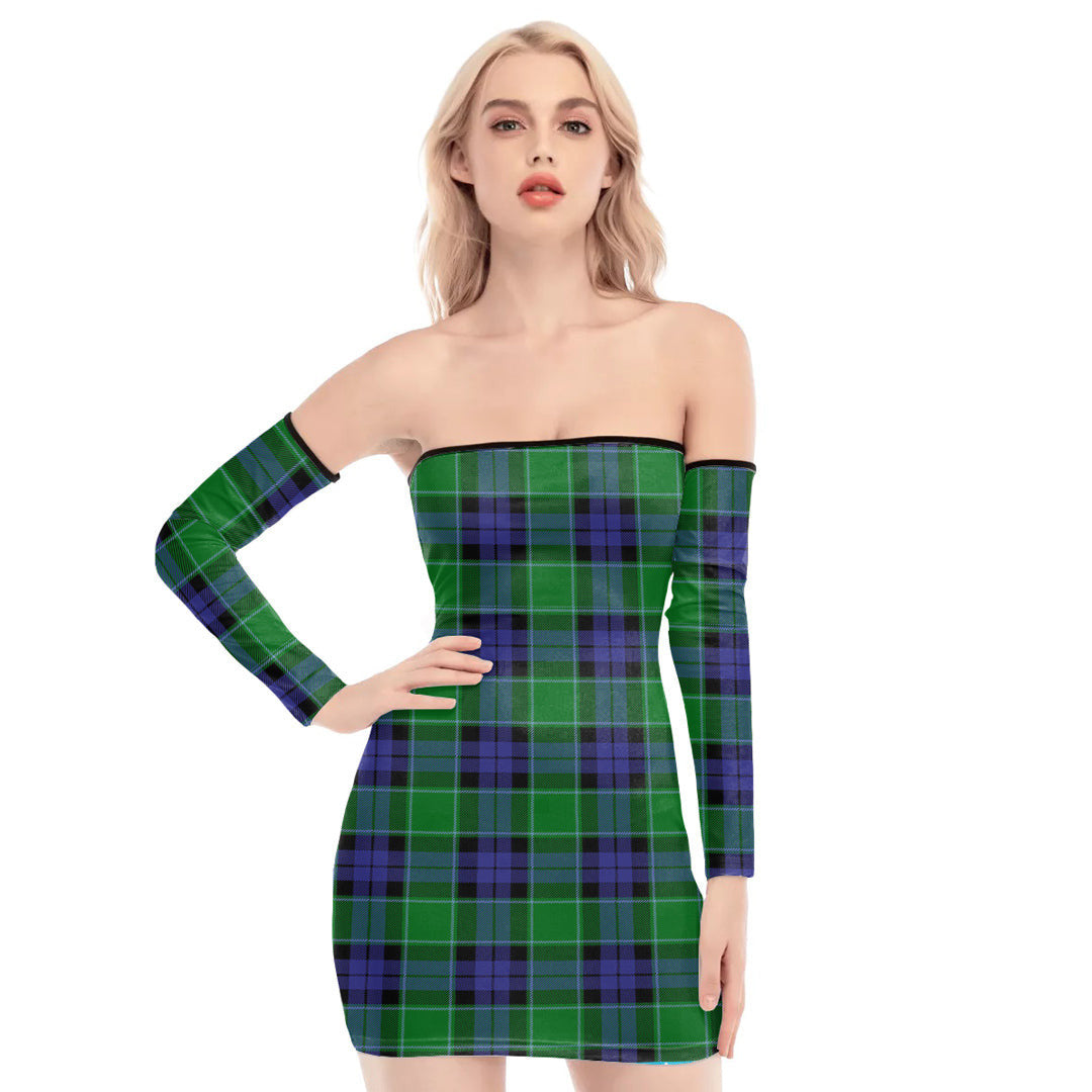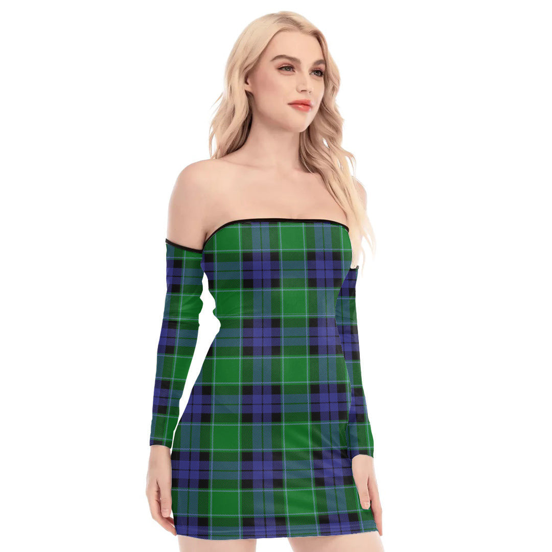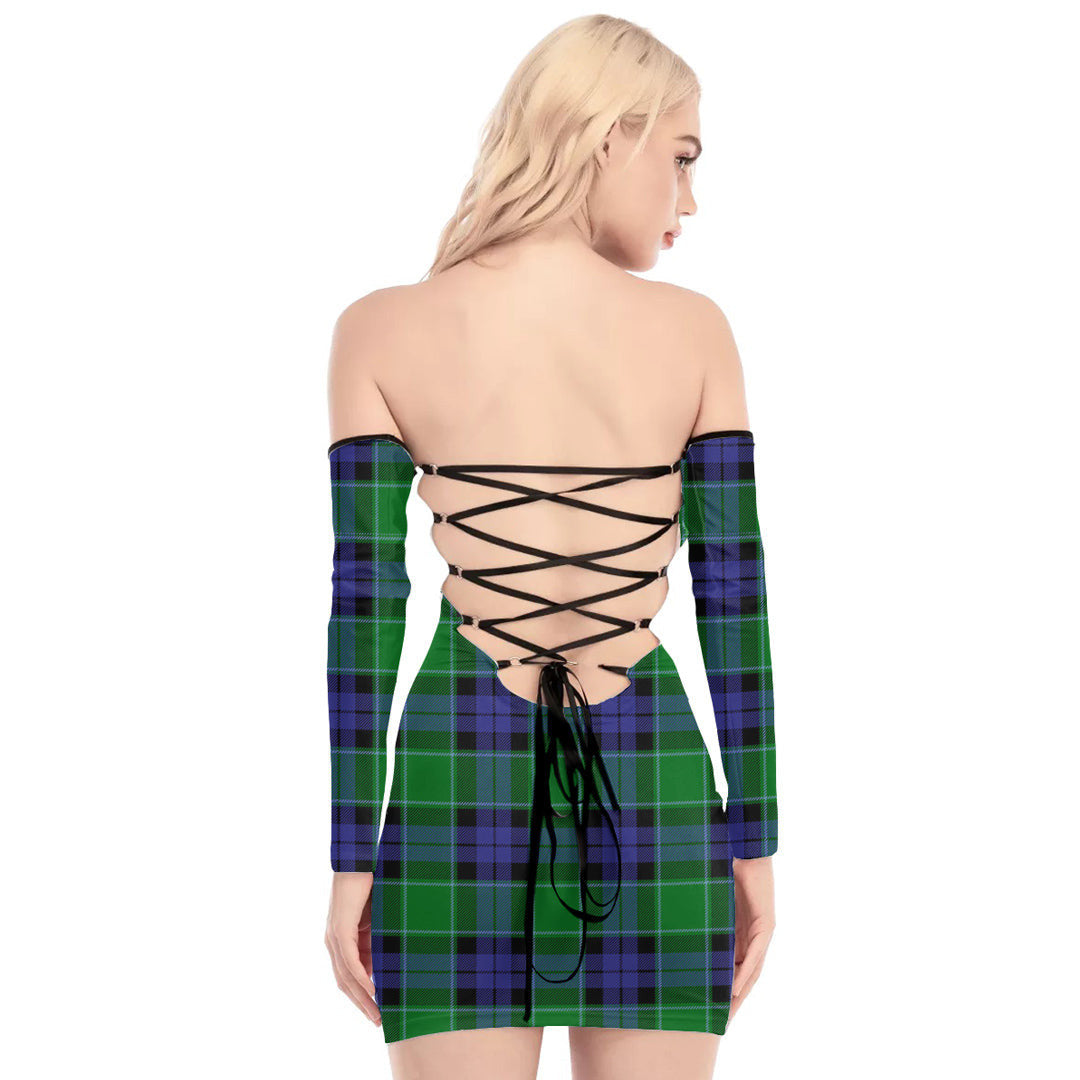 Graham of Menteith Modern Tartan Plaid Off-Shoulder Back Lace-Up Dress