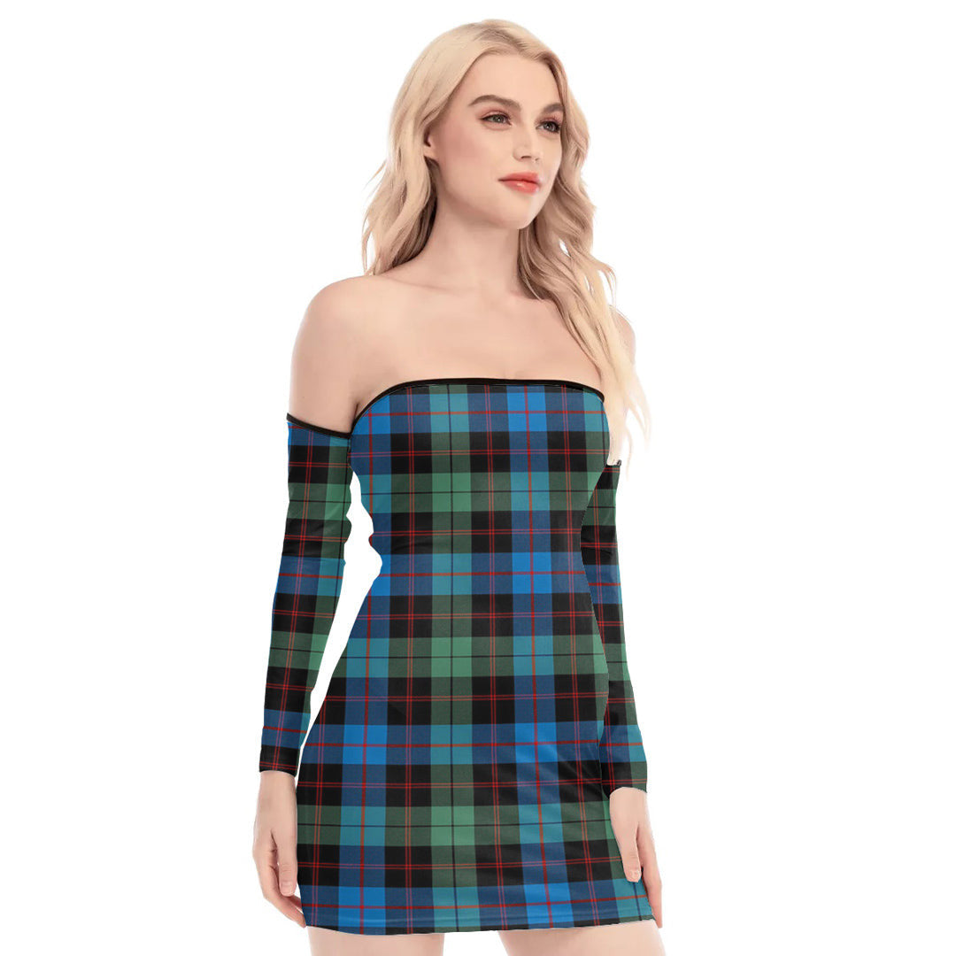 Guthrie Ancient Tartan Plaid Off-Shoulder Back Lace-Up Dress