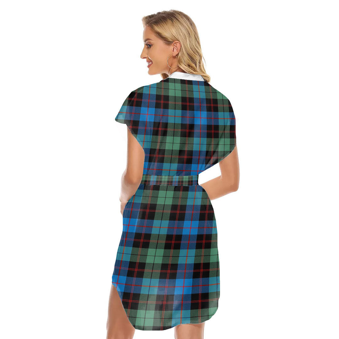 Guthrie Ancient Tartan Plaid Stand-up Collar Casual Dress With Belt