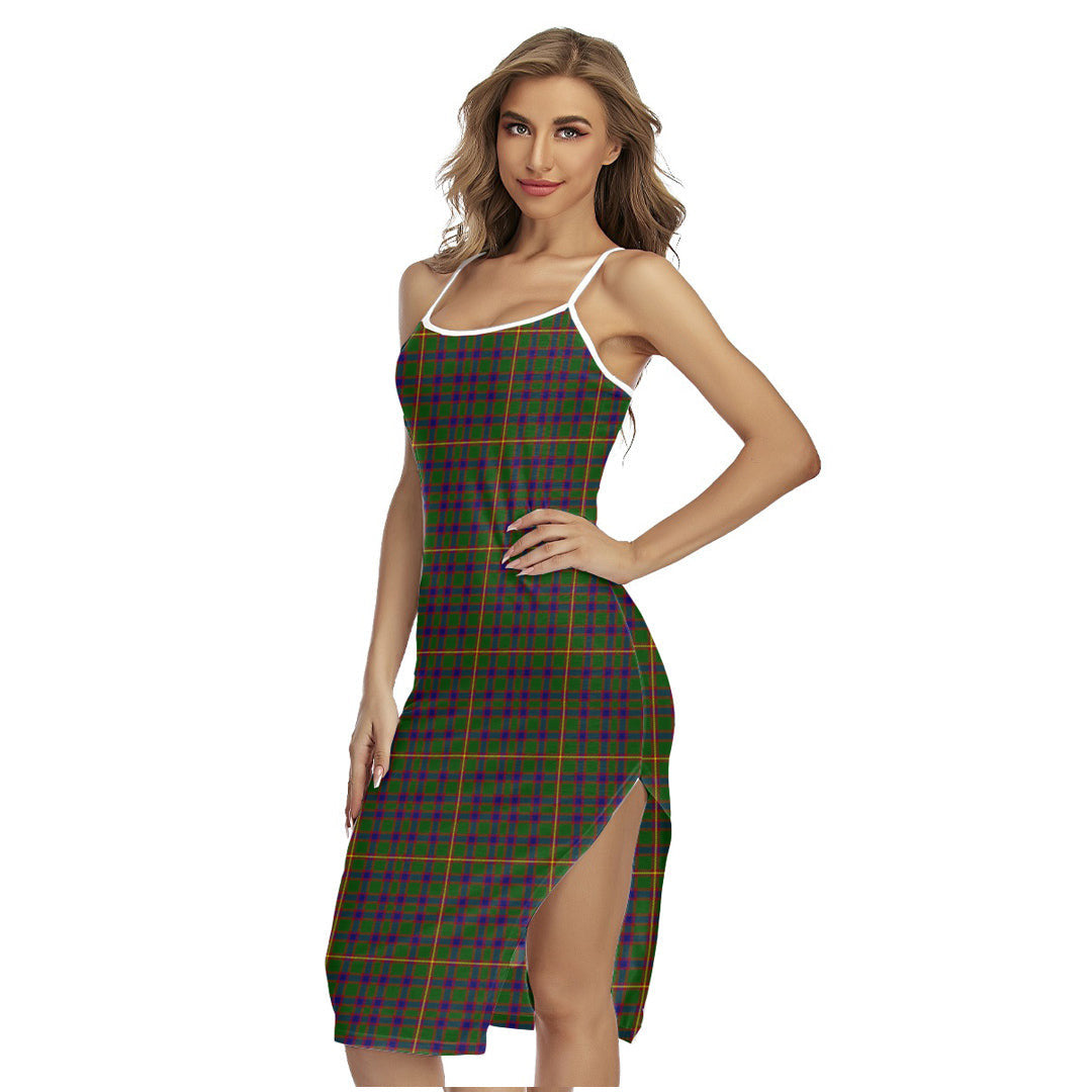Sexy knitted suspender skirt, side slit design can properly show the shape of the legs, the back suspenders are crossed, and the beautiful back is outlined