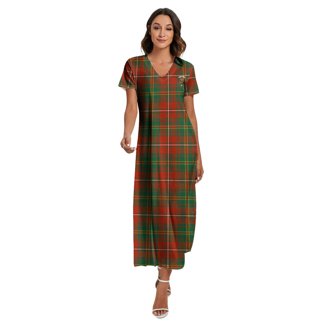 Hay Ancient Tartan Crest V-neck Dress Side Slit