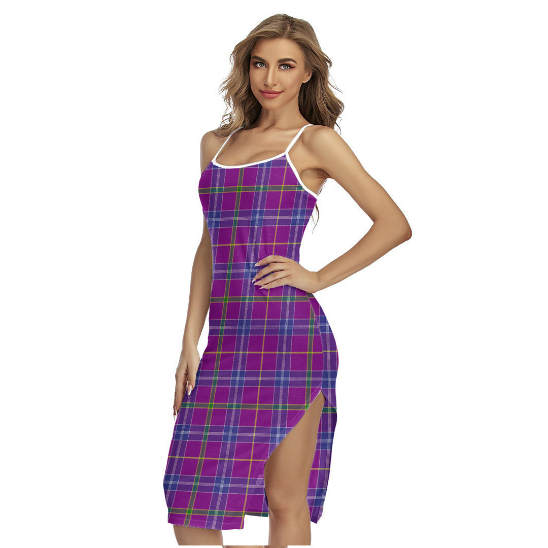 Sexy knitted suspender skirt, side slit design can properly show the shape of the legs, the back suspenders are crossed, and the beautiful back is outlined