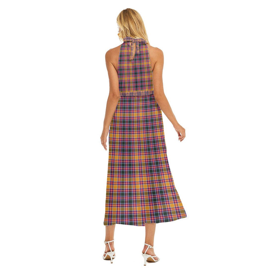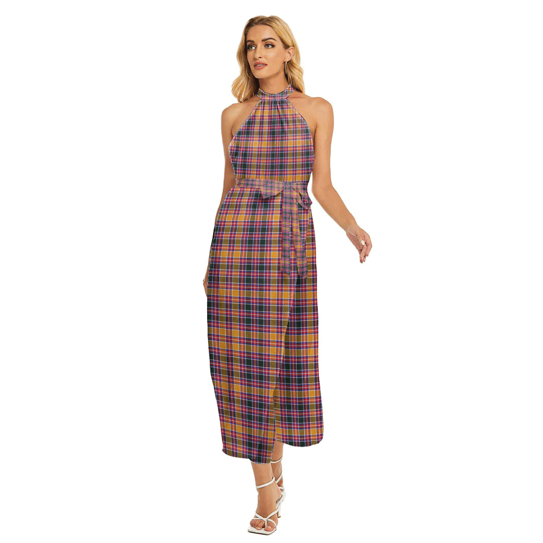 Jacobite Tartan Plaid Wrap Hem Belted Halter Dress