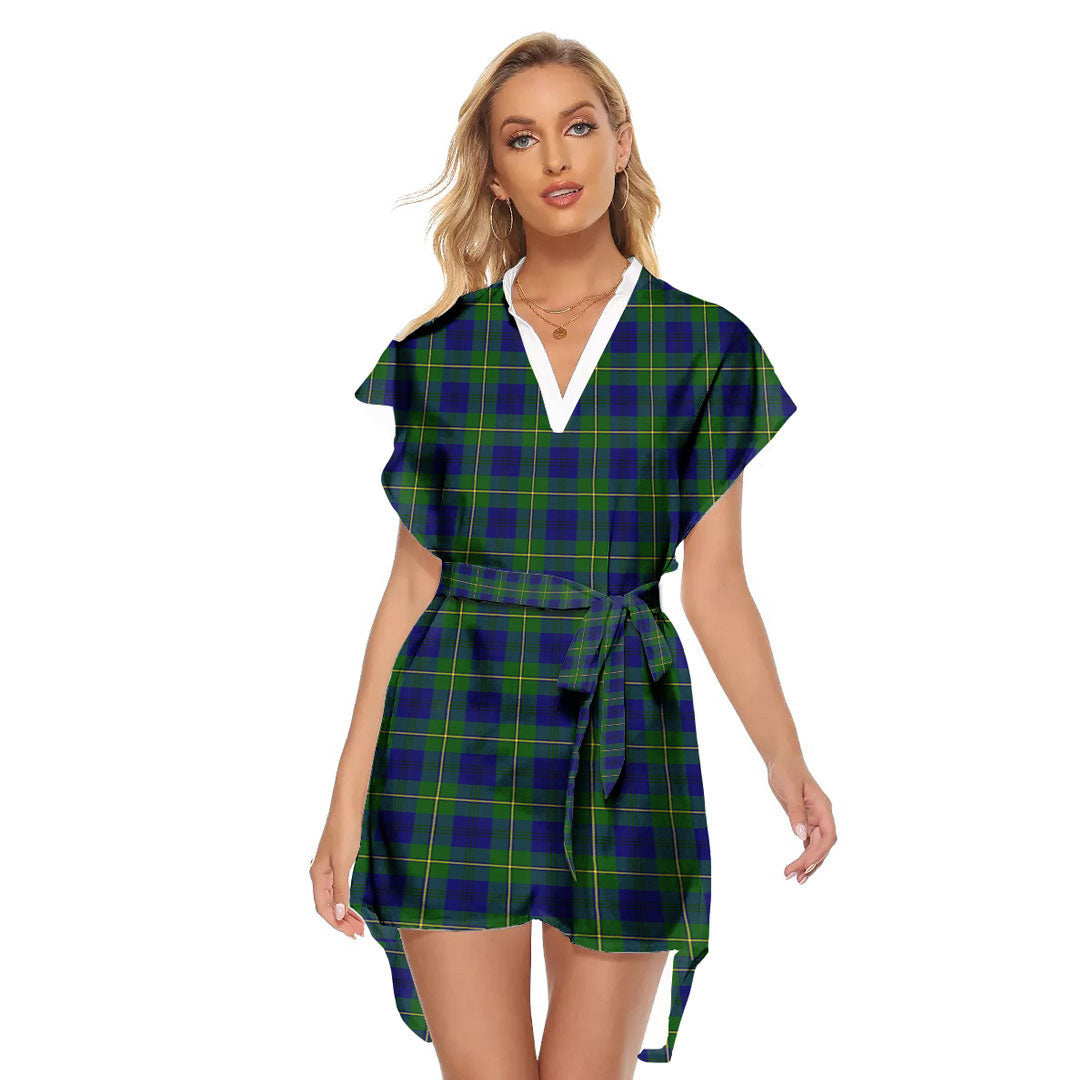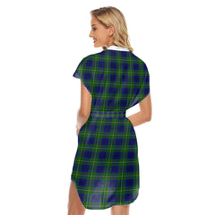 Johnston Modern Tartan Plaid Stand-up Collar Casual Dress With Belt