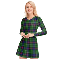 Leslie Hunting Tartan Plaid V-neck Long Sleeve Dress